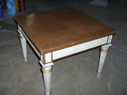 In all my life doing fixer upper projects I always forgot to take a "before" picture. Well here it is... I took an old smoke covered 70's style table and turned it into a marblized / patina stylish table. |